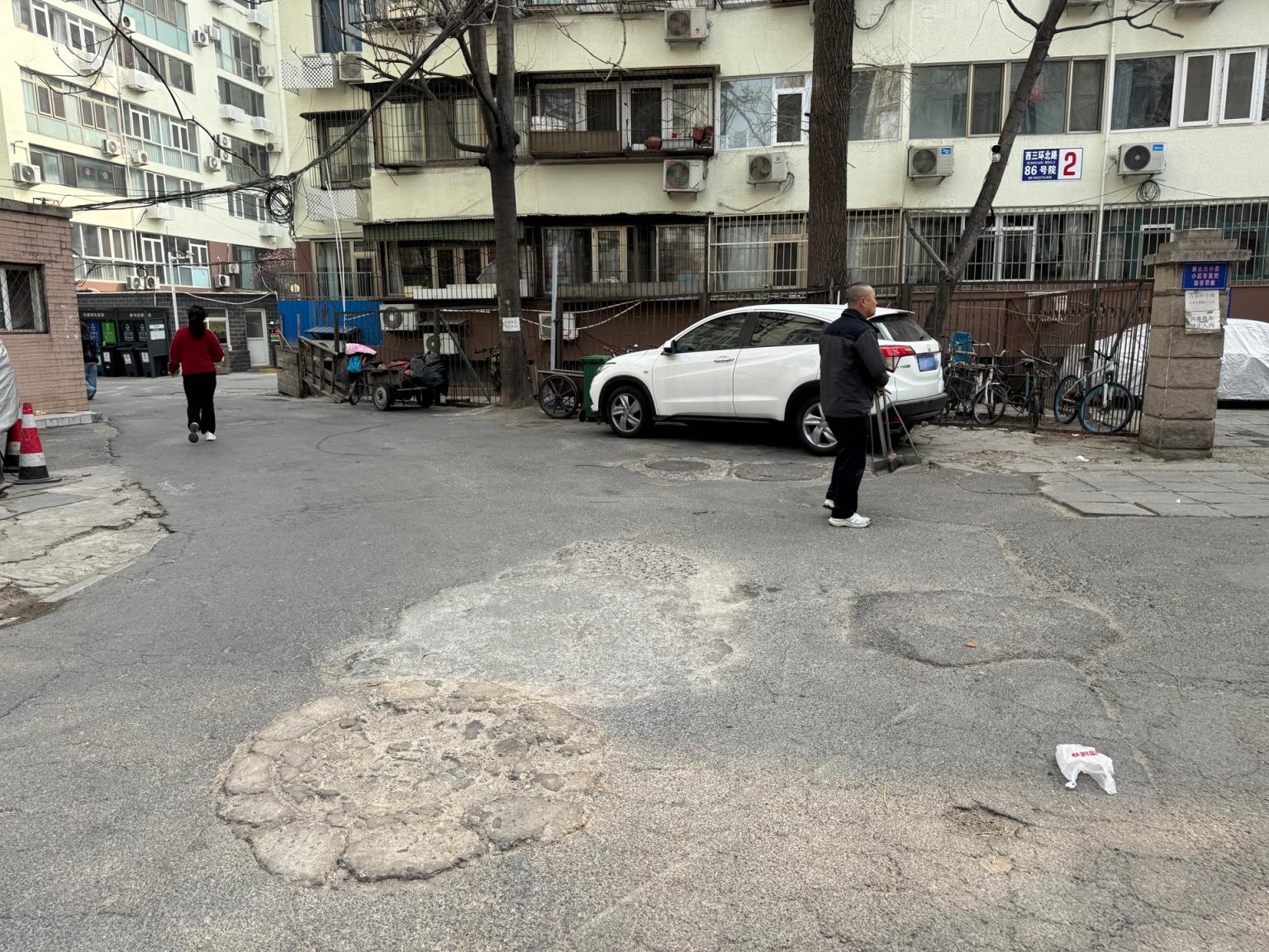 86号院共有500户居民,其中有不少老人和孩子。一位80多岁的老人说,由于到处高低不平,他几次绊倒摔跤,如今已不敢多出门。以前放任孩子在院里嬉笑奔跑的家长,如今也百般叮嘱孩子走慢点、当心脚下。居民张先生说,尤其到了晚上,施工导致小区里照明减少,很多地方漆黑一片,抱着孩子摸黑行走,深一脚浅一脚,每一步都走得踉踉跄跄。