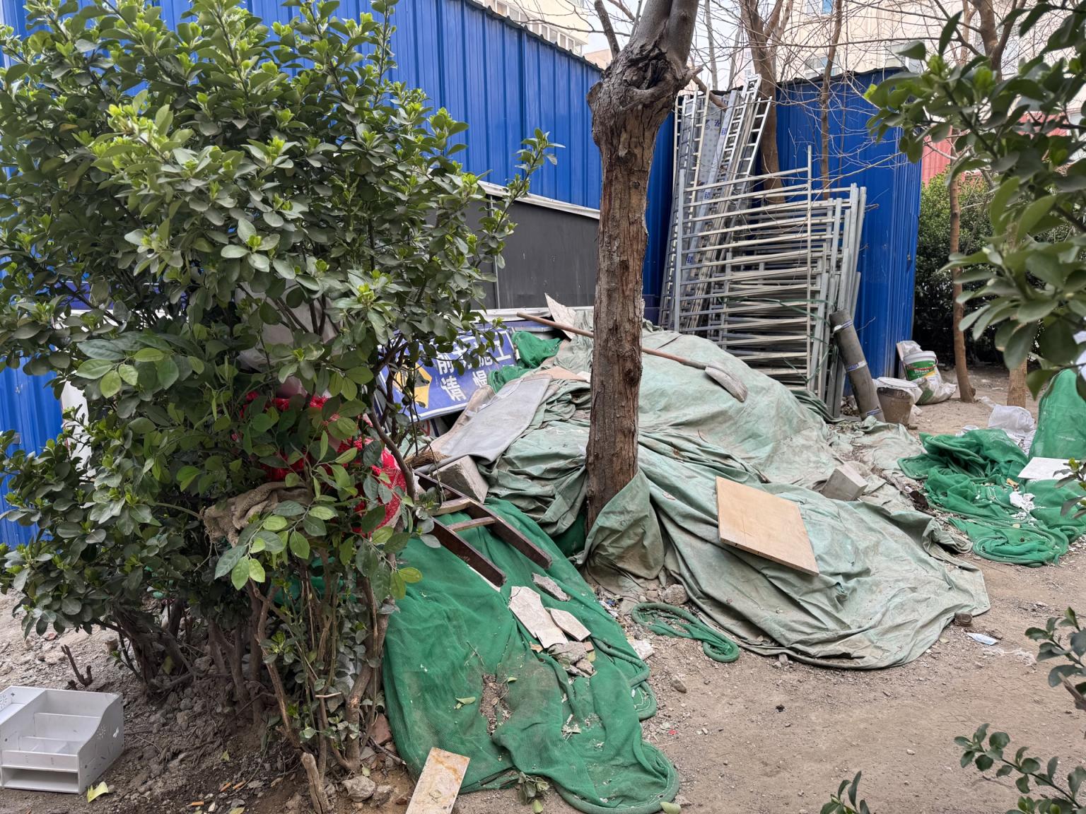 如今虽然春暖花开,但小院的环境令居民感到遗憾。院里的老人说:“为了旧改,小区仅有的小花园都被腾了出来。以前紧挨着居民楼种了一圈黄杨,但因妨碍加装保温层,也都被砍掉了。这些是施工必需的,大家都很支持。可没想到,旧改就这样停了,连路面都迟迟没恢复,补种绿植就更没动静了。”