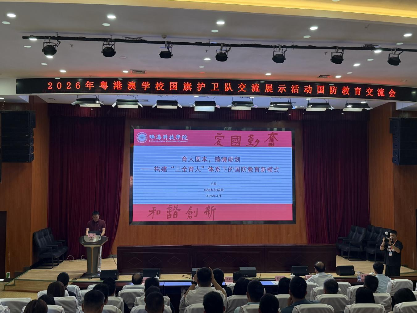 凝聚粤港澳青少年爱国情怀 构建湾区校际育人协作新模式26日下午活动闭幕式上,广东省教育厅体育卫生与艺术教育处处长王静娴讲话,佛山大学党委书记骆少明致辞。王静娴表示,护卫国旗是庄严的爱国主义教育,本次参赛规模再创历年新高,展示了新时代青少年尊崇国旗、热爱祖国的坚定信念,也彰显了粤港澳青少年同心向国、携手共进的精神风貌。学校国防教育是全民国防教育基础,希望粤港澳三地学校持续深化青少年国防教育交流合作,希望全省教育系统以此次活动为契机,进一步提高政治站位,推动学校国防教育再上新台阶。