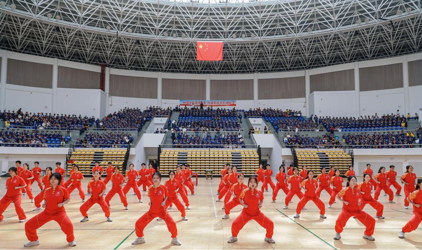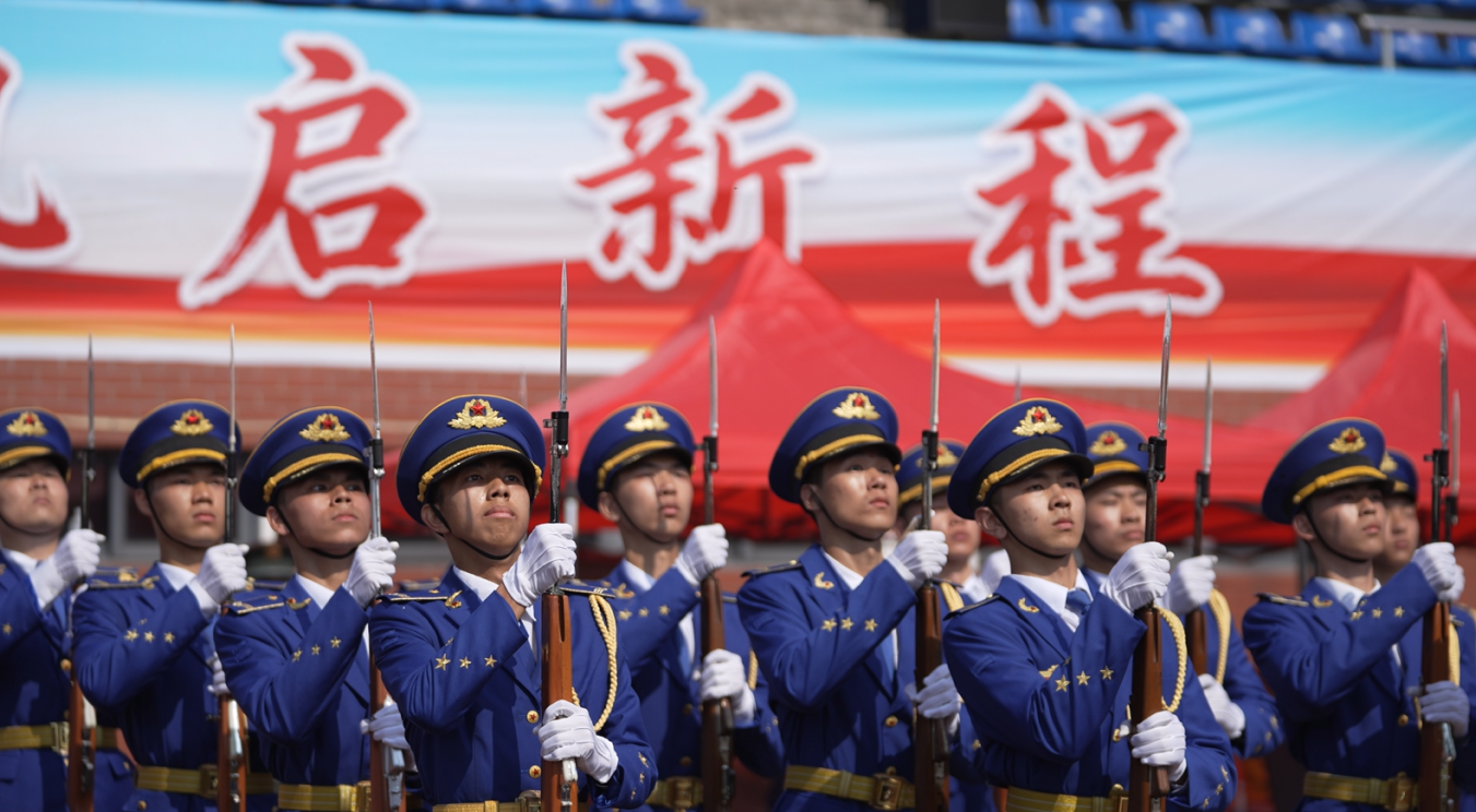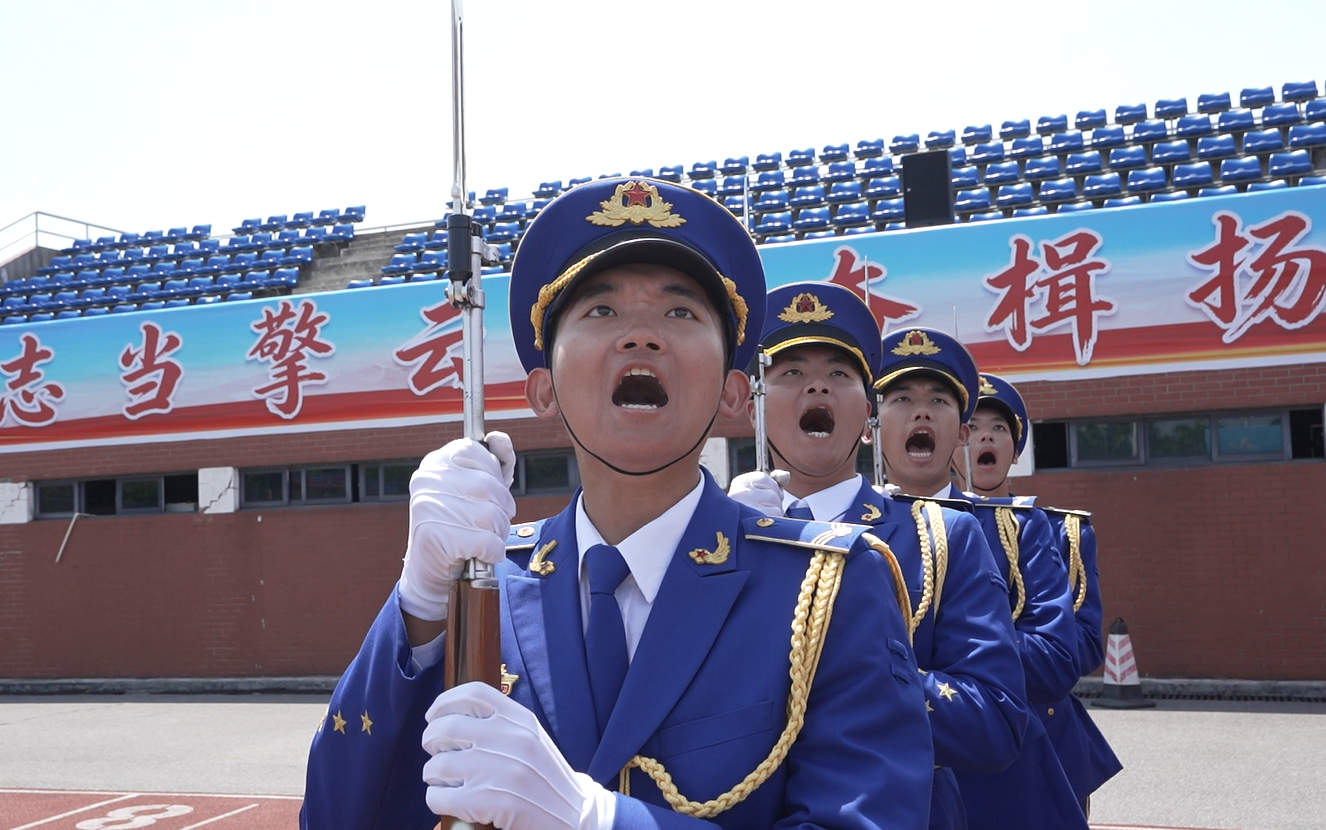 参赛队员身着整齐礼宾仪仗着装,肩扛闪耀肩章,身姿挺拔,以标准规范的队列动作、昂扬饱满的精神斗志、严谨过硬的作风纪律,展现了新时代青年学生扎实的国防素养、严明的纪律意识与家国担当。