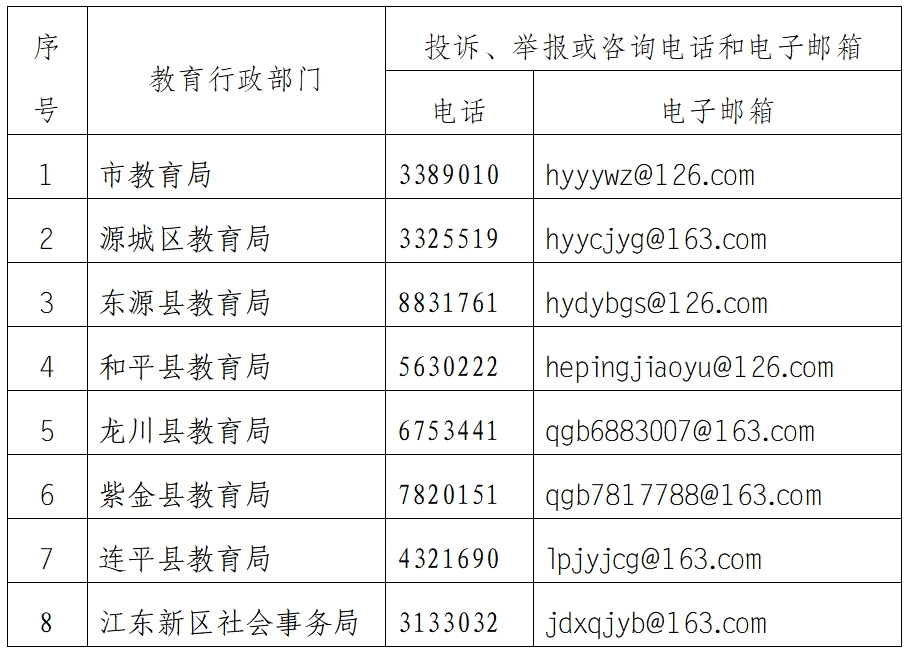 按照义务教育属地管理的原则,如有投诉、举报或咨询请致电县或区的教育行政部门(详见下表)。市直属学校入学业务致电市教育局。