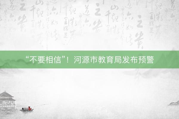 “不要相信”!河源市教育局发布预警