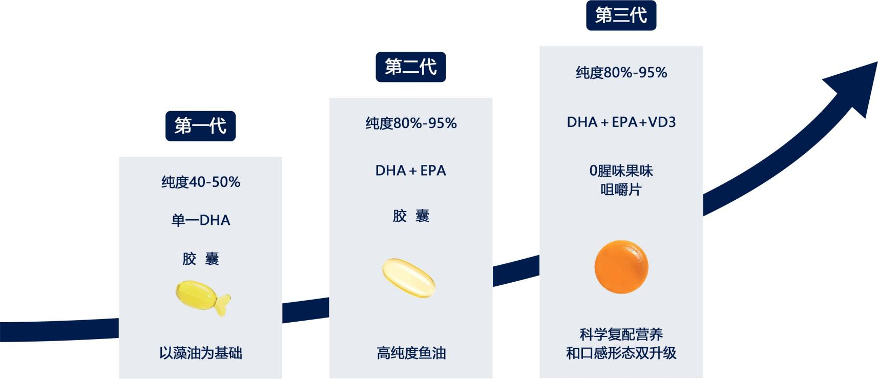 目前,剂型创新、安全需求深度挖掘、精细化营养方案、年龄边界拓展等成为各大品牌的破局切口。如澳乐乳提出“Care for Family”理念,带来覆盖孕妇、婴幼儿等全生命周期解决方案;童年时光青少年DHA叶黄素复合产品;壹营养推出夹心型凝胶糖果DHA藻油等产品;健敏思遵循全球12国过敏原标准,专注无敏领域;WHC小超人则将儿童成长周期拆解为精细化的营养阶段,提出的“3岁+儿童分阶营养”;创新设计“DHA+EPA+维生素D3”科学配方,精准匹配大脑发育、骨骼健康及免疫调节的复合营养目标。同时,WHC还创新使用咀嚼布丁鱼油剂型,其依托 Concordix 专利技术,将DHA、EPA与维生素D3复配为小分子微粒,解决了传统产品腥味重、吞咽难的痛点,更通过布丁形态与热带水果口味的创新结合,实现“营养补充”与“感官体验”的双重升级,为行业提供了从单一成分向分阶营养解决方案转型的实践范本。