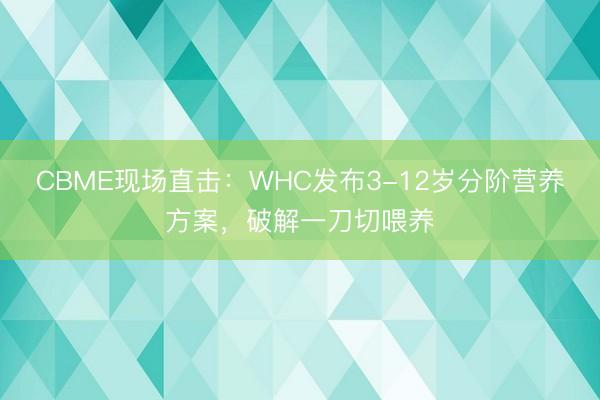 CBME现场直击:WHC发布3-12岁分阶营养方案,破解一刀切喂养