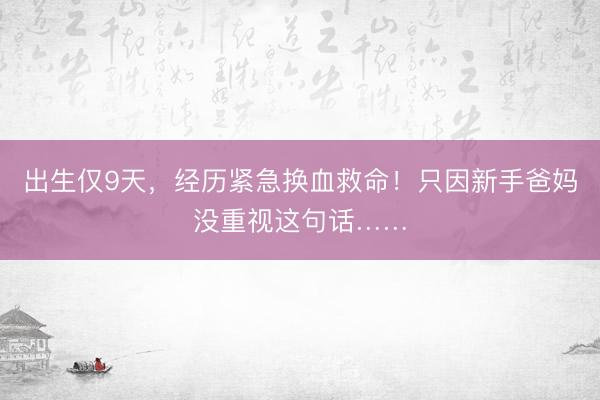 出生仅9天,经历紧急换血救命!只因新手爸妈没重视这句话……